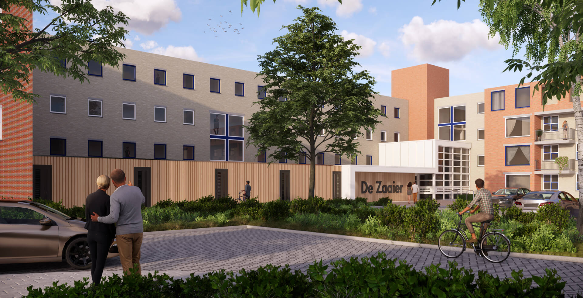 SW Vastgoedverbetering voert de werkzaamheden uit. Hans Wortelboer van SW: “We zijn zeer verheugd om dit speciale project te mogen uitvoeren. Doordat we al lange tijd betrokken zijn bij het buiten- en binnenonderhoud aan de Zaaier kennen we het complex door en door. Voor ons is het dan ook extra leuk dat we nu een stukje toe mogen voegen aan dit complex. Eind mei ronden we het project af en kunnen de bewoners optimaal gebruik maken van de nieuwe entree.”