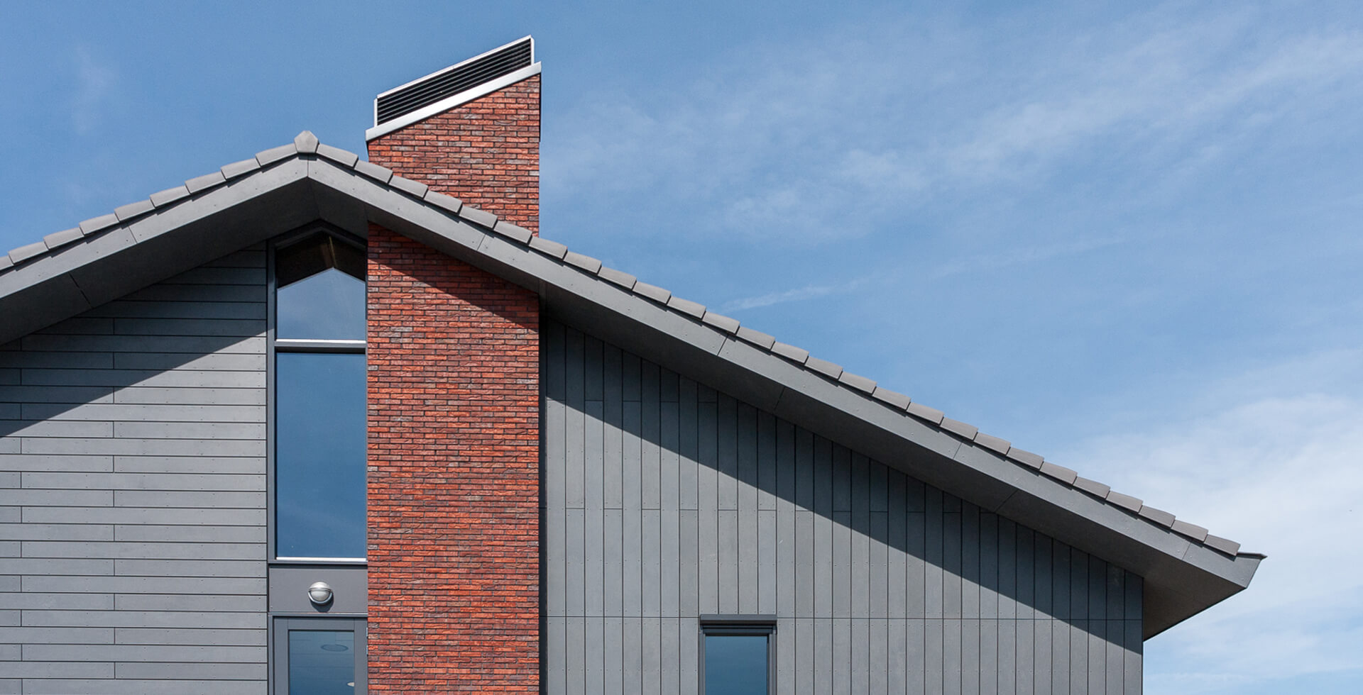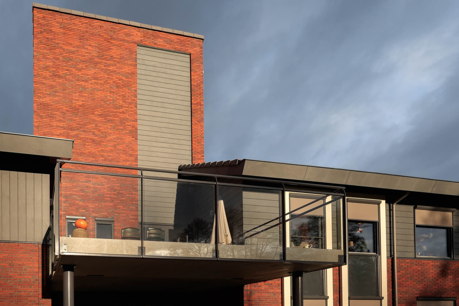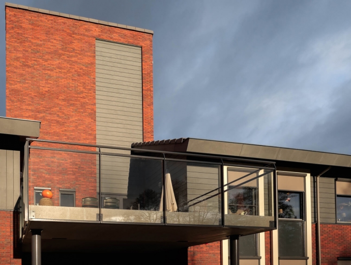 Het ontwerp laat zich omschrijven als een sobere, maar krachtige vorm, waarbij de insnoering ter plaatse van de entree wordt versterkt door een hoog opgaand gevelvlak en een groot balkon. Lichte kaders om de kozijnen markeren de einden van het gebouw en de voordeur. De gebruikte baksteen is een mix van drie stenen van Strating uit Oude Pekela. Verder is een Cembrit gevelplaat toegepast, die lijkt op Belgisch hardsteen. Deze planken hebben een matte uitstraling en zijn door-en-door gekleurd. Het dak is gedekt met een vlakke pan en de kappen op de schoorstenen zijn zorgvuldig ontworpen.