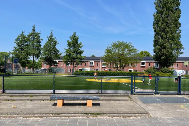 De locatie voor de 30 huurwoningen voor Actium vormt een unieke situatie, in het midden ligt een voetbalveld genaamd het Cruyff Court. Daaromheen liggen de woningen, die allen met hun voorgevel gericht zijn op het voetbalveld. De relatie van het Cruyff Court en het uitzicht is versterkt door plaatsen van witte uitkijkvensters welke verspringend zijn geplaatst over de woningen. Elke woning wordt daarmee toeschouwer van het voetbalveld.