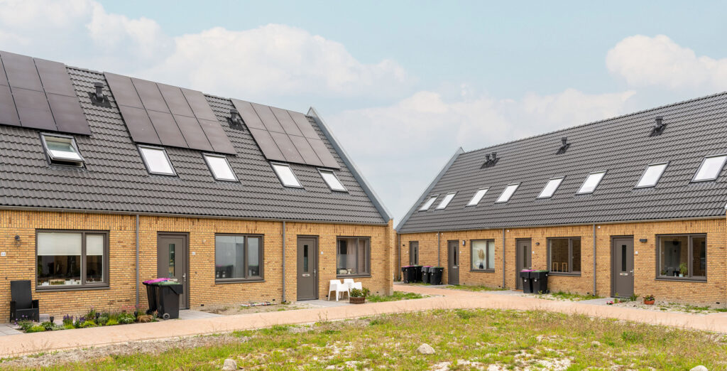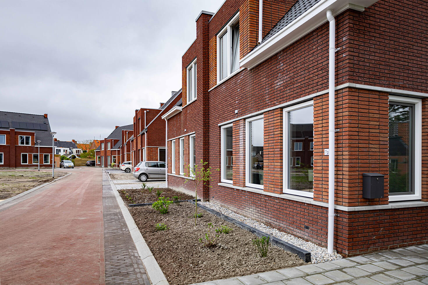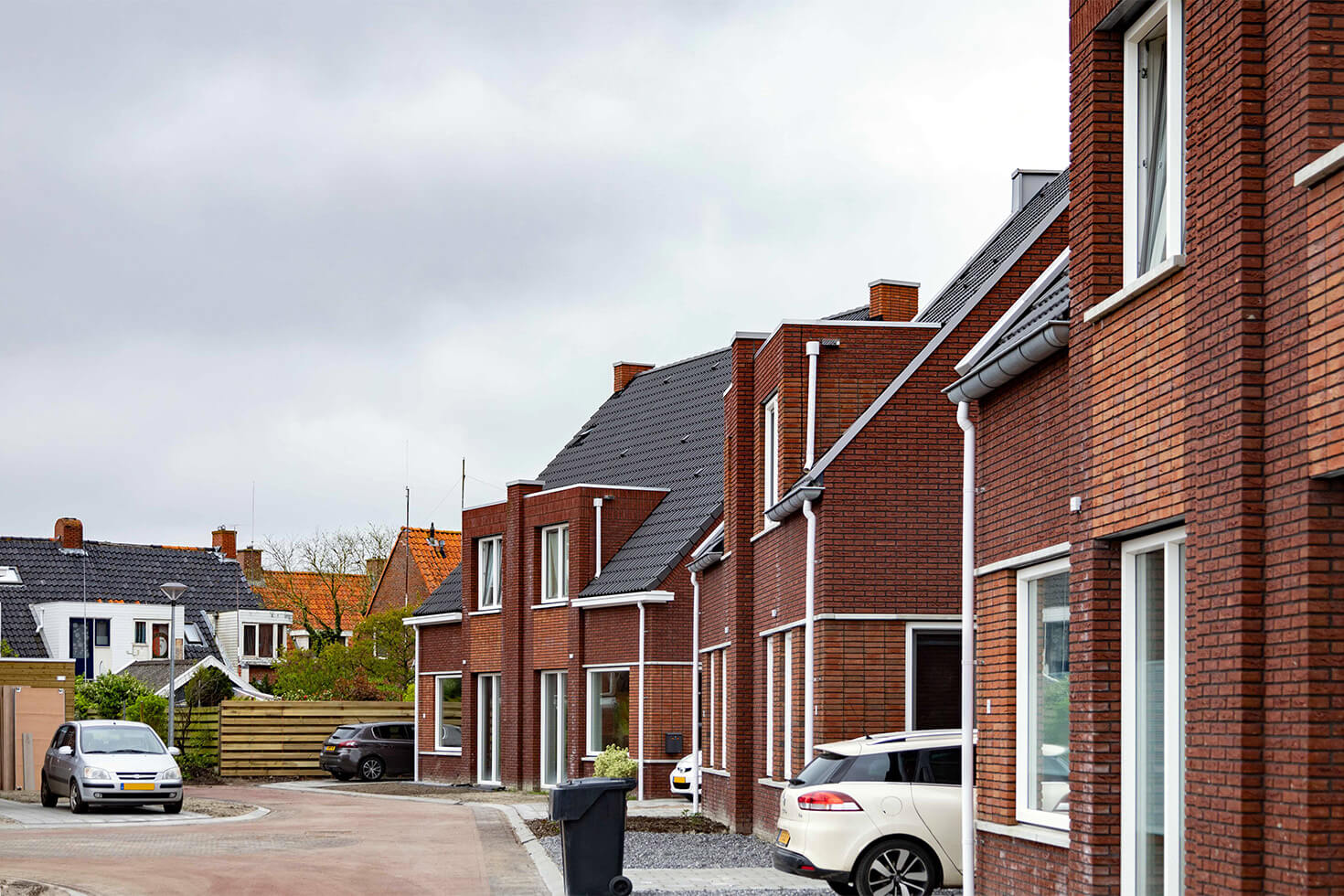 Bij het nieuwe groene hoef is het juist passend om een sterke samenhang te realiseren. Om het individuele karakter van de woningen te realiseren is er gekozen voor een verticale en horizontale indeling van de gevels en voor verschillende type dak beëindiging. Dit samen met een klein verschil in Groningsrode bakstenen maakt dat de woningen een individueel karakter hebben maar als geheel de samenhang gewaarborgd blijft.