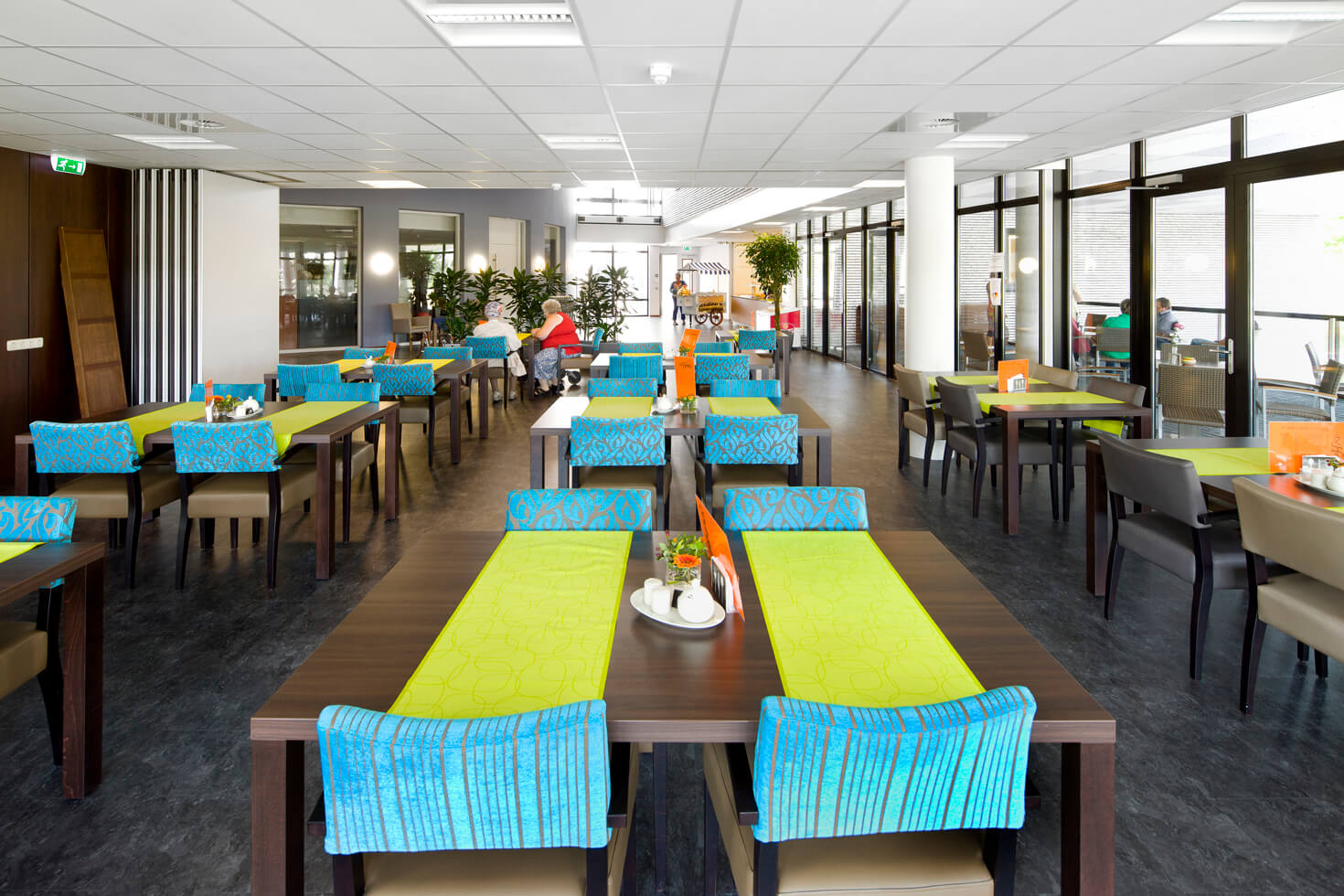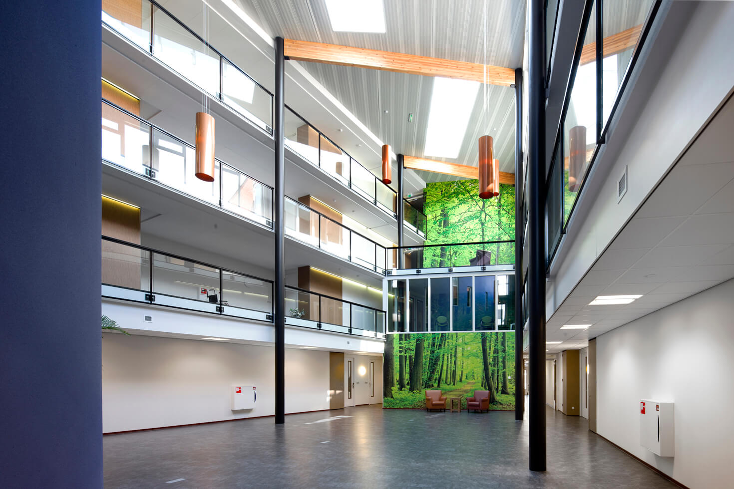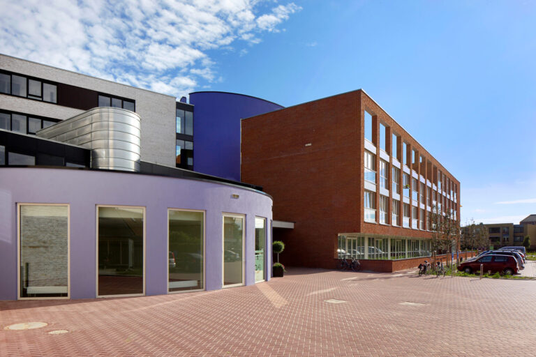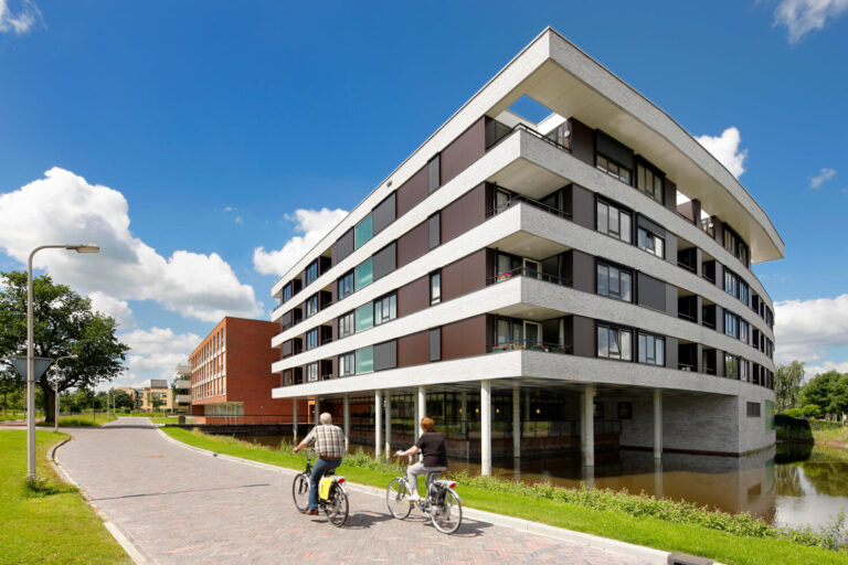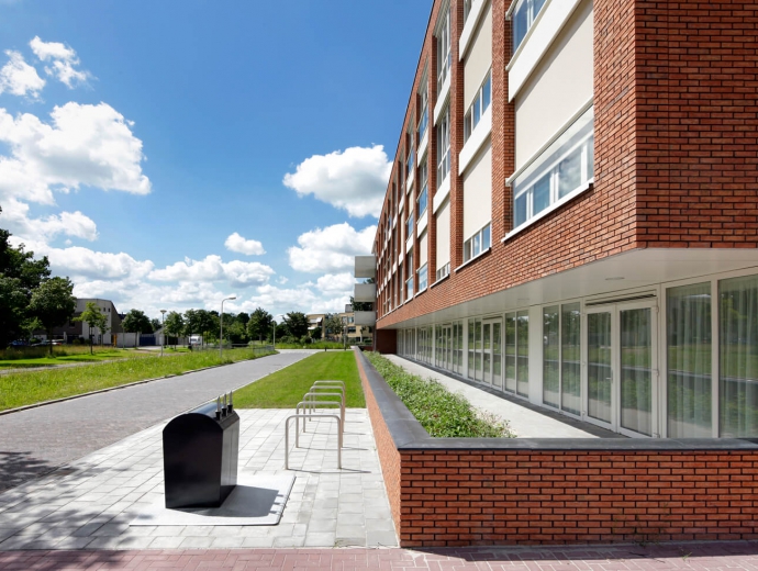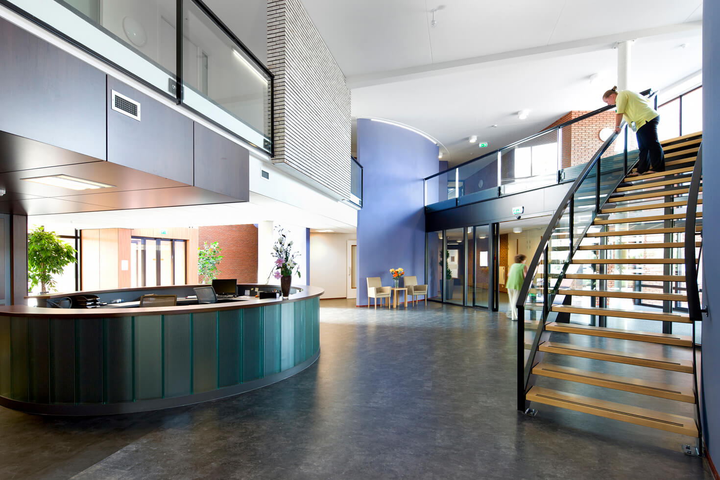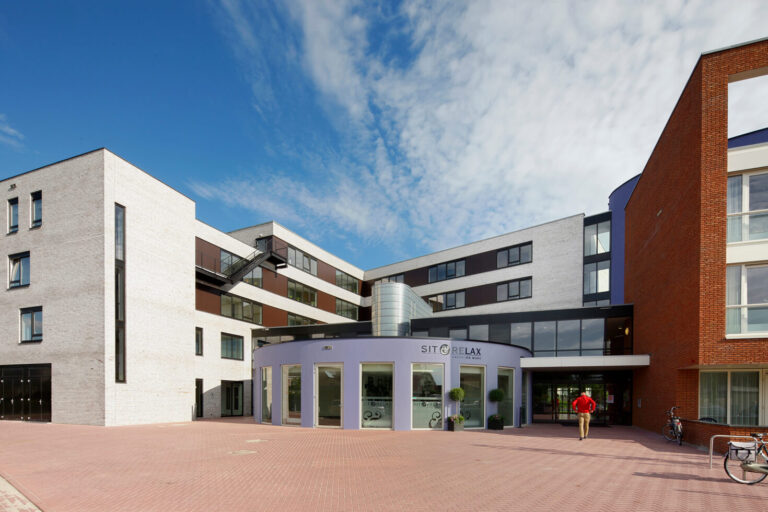 Het woon-zorgcomplex aan de westkant van Hoogeveen is een open gebouw waar de buurt welkom is, het voetpad is onderdeel van het gebouw en loopt door het gebouw heen. De verkleining van massaliteit van het gebouw is een leidraad geweest voor de uitstraling.