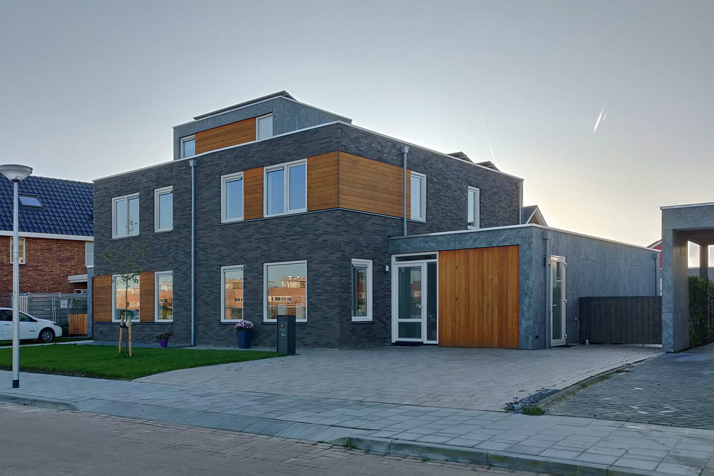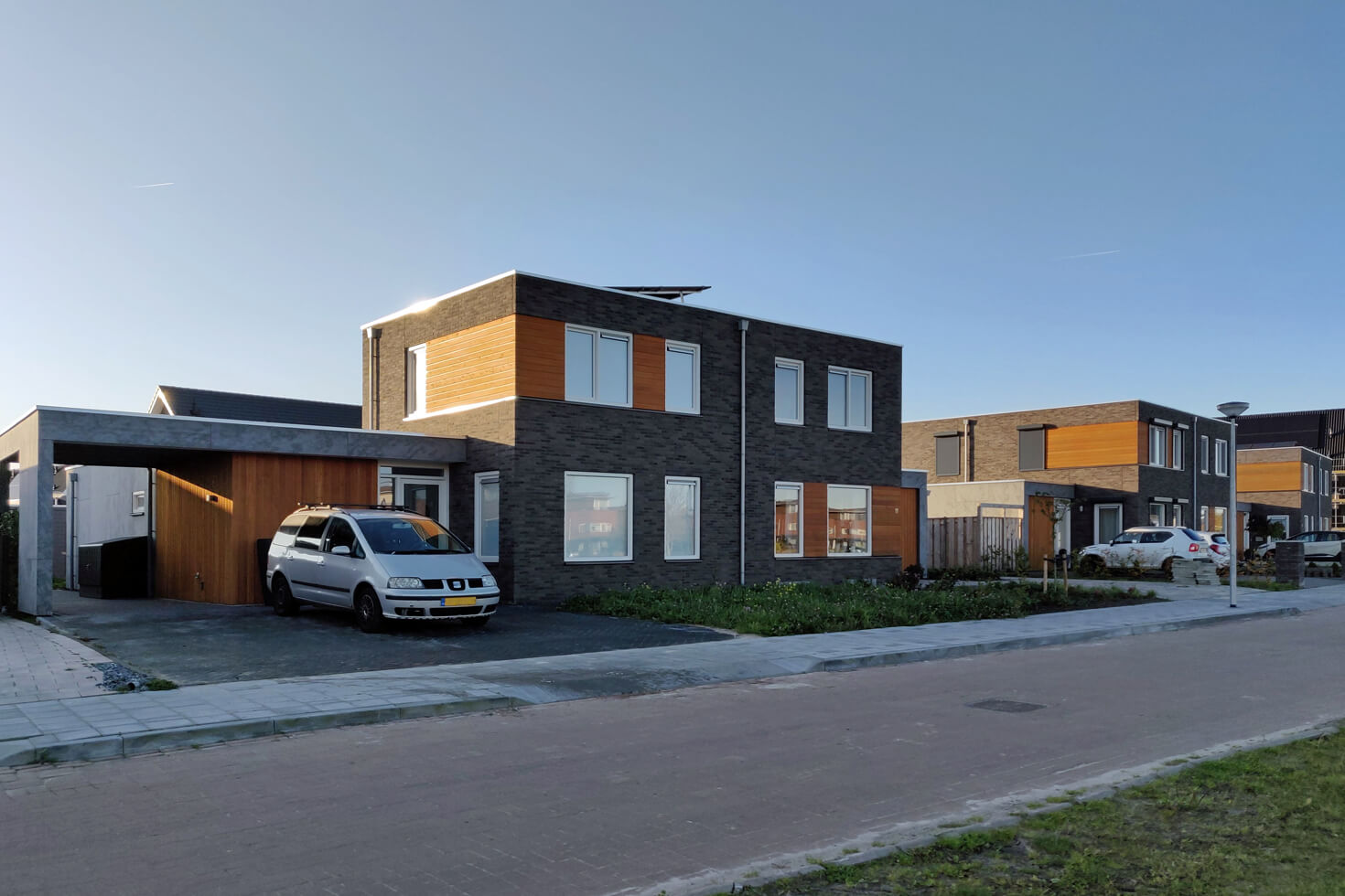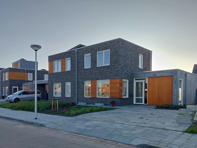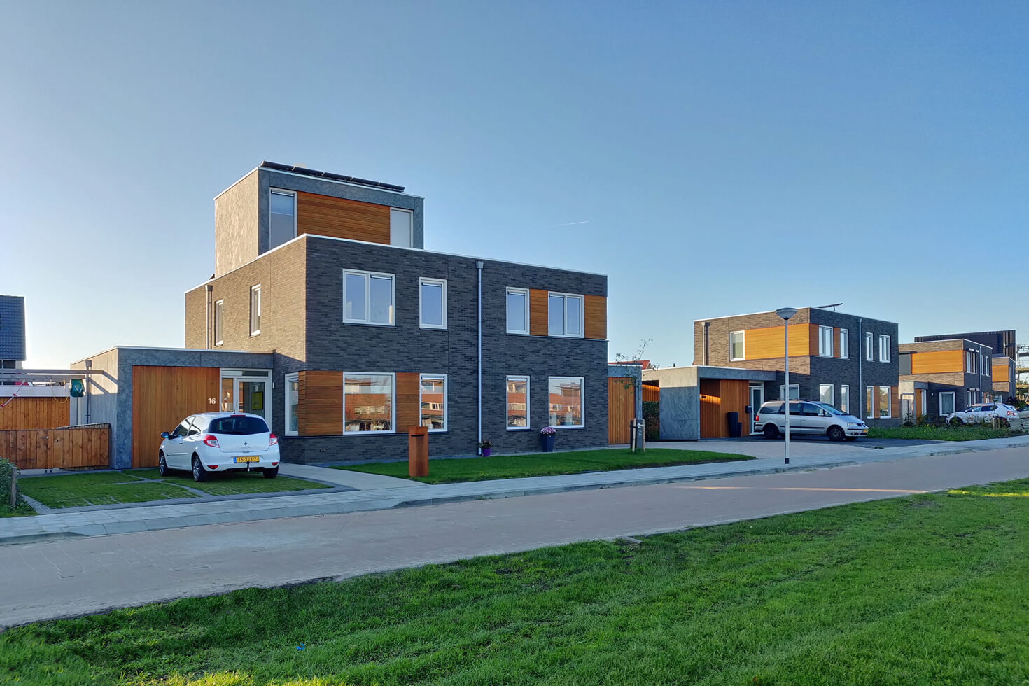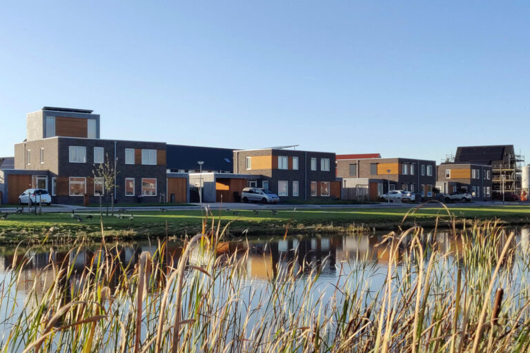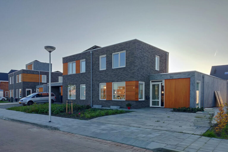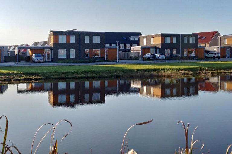 Aan de Veiling, de straat met de mooiste ligging in Vosholen, zijn door Gebroeders Benus modern vormgegeven woningen naar ontwerp van HJK architecten gebouwd.