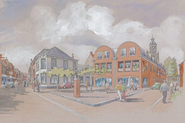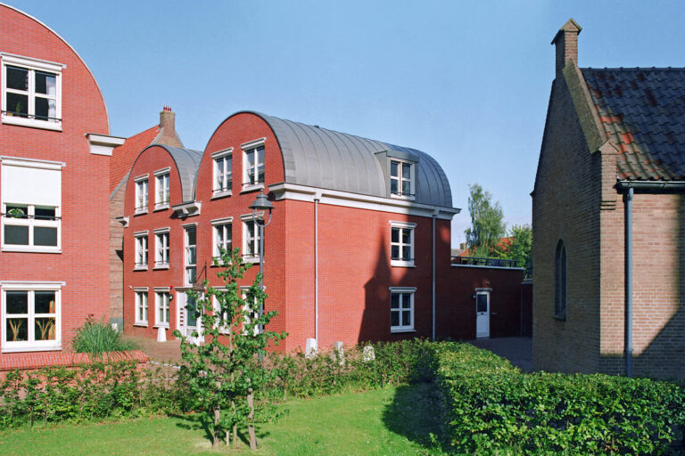 Een verassend kleinschalig woon-zorg project in het oude centrum van Huissen. Gelegen aan de Langestraat met de monumentale kerk in de achtertuin. De voorgevel aan de Langestraat is teruggeschoven zodat er een vriendelijk pleintje ontstaat met een terrasfunctie. Door de robuuste eigentijdse detaillering van het ronde zinken dak, de betonnen dakranden met goten en betonnen ornamenten boven de ramen is er aansluiting gevonden bij de vriendelijke uitstraling van het centrum van Huissen.