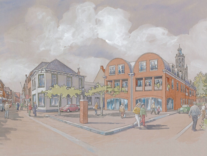 Een verassend kleinschalig woon-zorg project in het oude centrum van Huissen. Gelegen aan de Langestraat met de monumentale kerk in de achtertuin. De voorgevel aan de Langestraat is teruggeschoven zodat er een vriendelijk pleintje ontstaat met een terrasfunctie. Door de robuuste eigentijdse detaillering van het ronde zinken dak, de betonnen dakranden met goten en betonnen ornamenten boven de ramen is er aansluiting gevonden bij de vriendelijke uitstraling van het centrum van Huissen.