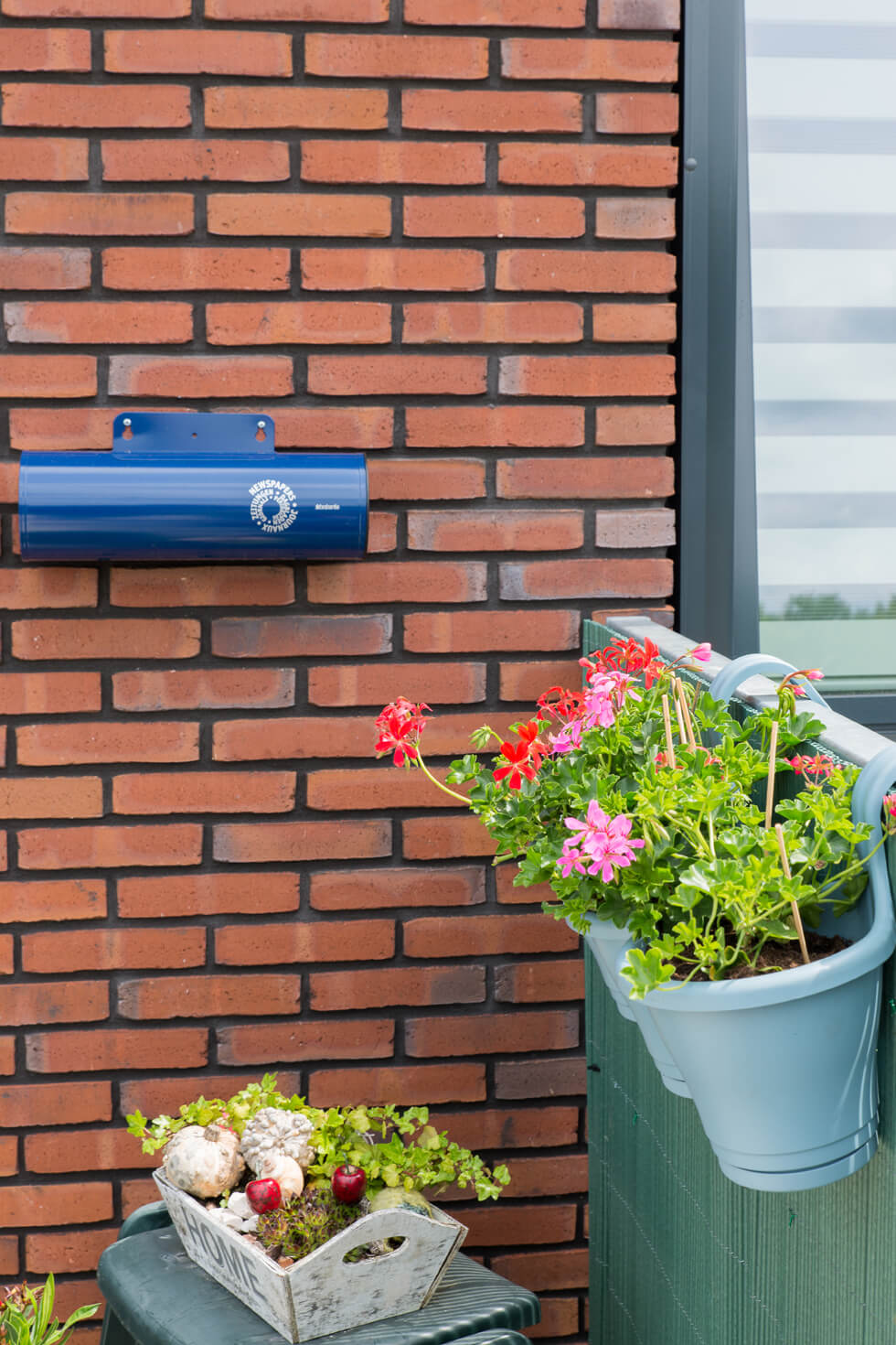 Aan de straatzijde vallen de betonnen luifels rondom de entree direct op, deze versterken samen met de grote raampartijen per woning de telbaarheid van het gebouw. De telbaarheid versterkt de uitstraling van grondgebonden woningen nog meer. Achter de 2 volumes is een binnenterrein met veel groen waar alle appartementen hun buitenruimte aan hebben.