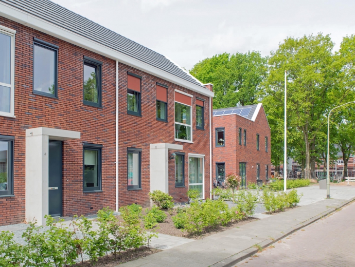 De Design & Build selectie die Woonborg hiervoor is uitgeschreven is door een combinatie van Paas en HJK architecten gewonnen. Het woongebouw bestaat uit 2 volumes van 2 bouwlagen en zijn aan de achterzijde gekoppeld door de galerij en het verticale stijgpunt. De appartementen op de verdieping hebben via de galerij toegang tot hun woning. De appartementen op de begane grond hebben de voordeur aan de straatzijde, hierdoor heeft het woongebouw de uitstraling van grondgebonden woningen vanaf de straat.