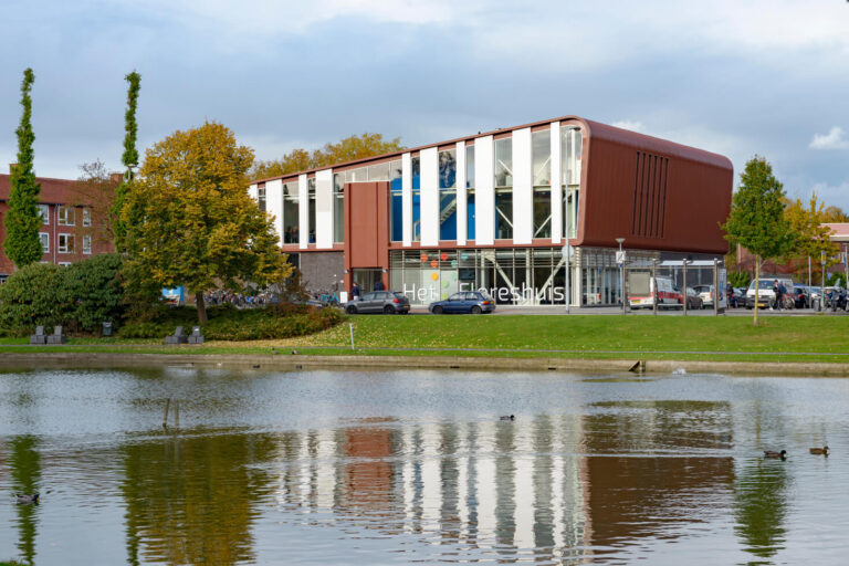 Ontmoeting als één van de belangrijkste pijlers vraagt om een gebouw dat de aandacht trekt en zich transparant manifesteert. Het bruist binnen en het maakt je nieuwsgierig. De afwijkende vorm trekt de aandacht en de warmbronzen huid en het vele glas karakteriseren de bijzondere functie in de wijk.