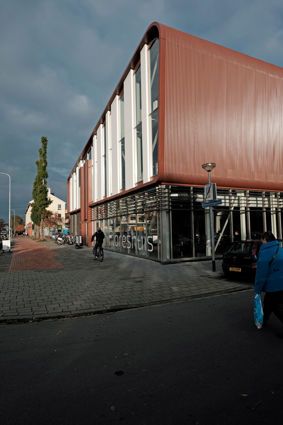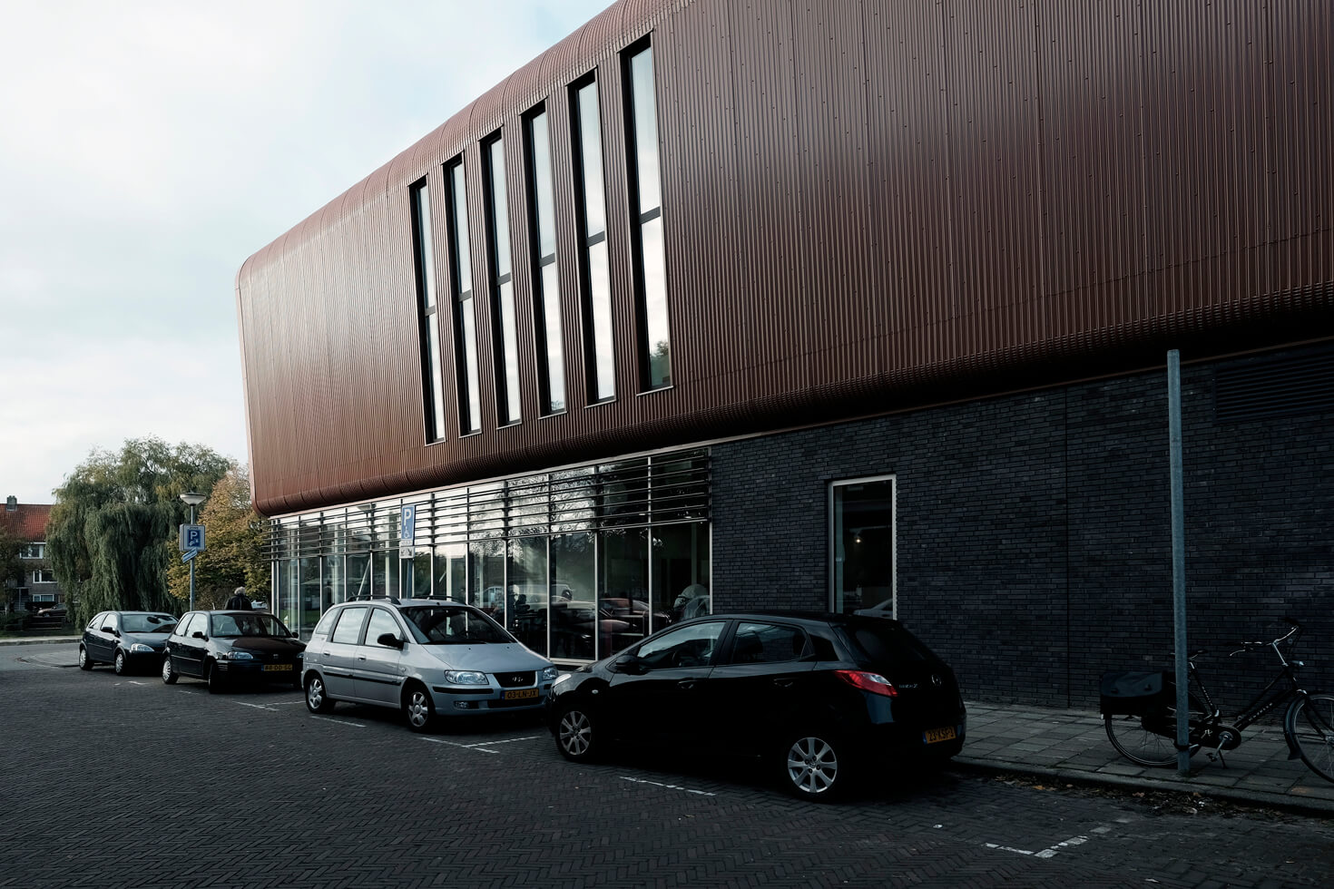 Ontmoeting als één van de belangrijkste pijlers vraagt om een gebouw dat de aandacht trekt en zich transparant manifesteert. Het bruist binnen en het maakt je nieuwsgierig. De afwijkende vorm trekt de aandacht en de warmbronzen huid en het vele glas karakteriseren de bijzondere functie in de wijk.