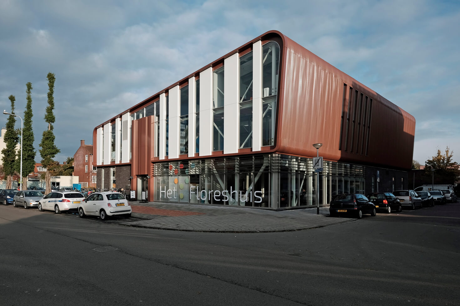 Het ontwerp van het Floreshuis is gebouwd als staalconstructie met een rastermaat van 7,5 m x 7,5 m. Het gebouw is aardbevingbestendig uitgevoerd. De vloeren zijn van beton of hout, de buitengevel en het dak van bronskleurig aluminium en glas. Het inbouwpakket is licht en flexibel, passend bij het karakter van de functies.