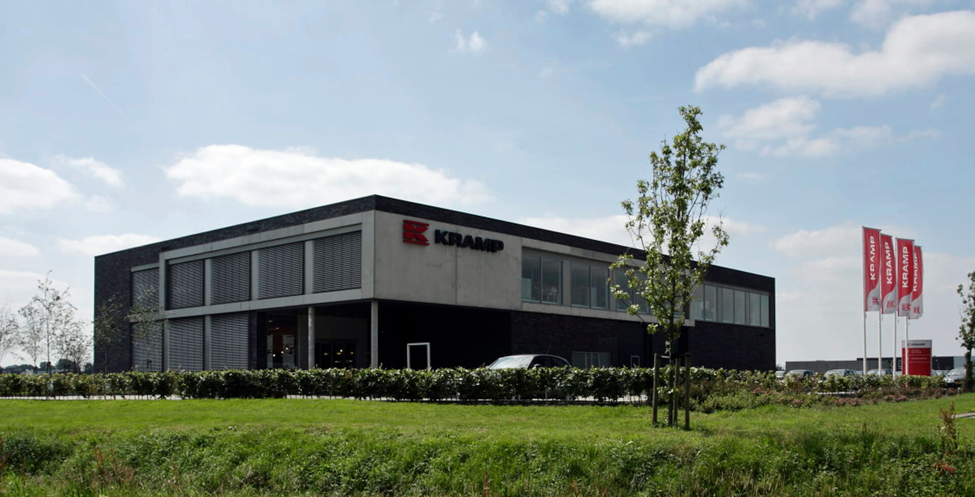 Kramp, één van de grootste technische groothandels van Europa, zocht voor haar bedrijf op het oude industrieterrein van Tolbert, een locatie waar haar ideeën over kwaliteit, dynamiek, vakkundigheid, enthousiasme en klantgerichtheid beter tot uiting konden komen. Het programma voor de nieuwe huisvesting was eenvoudig: ontwerp ongeveer 900 m2 kantoorruimte en 1200 m2 magazijn. De uitstraling moet open en toegankelijk zijn, je mag zien wat erbinnen gebeurt.