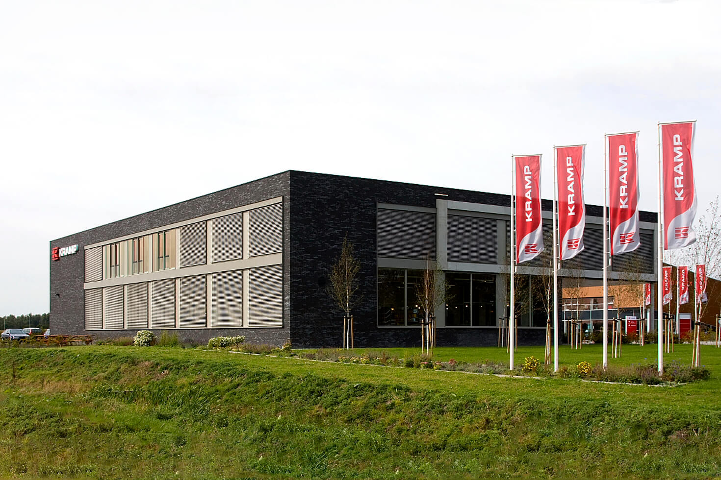 Kramp was ervan overtuigd dat het gebouw, dat zij langs de rand van de A7 zou betrekken, een meer hoogwaardige uitstraling zou hebben als het in baksteen zou worden uitgevoerd. De ingetogen architectuur, met hier en daar een bijzonder element van beton, straalt de luxe uit die past bij de kwaliteitsslag die het bedrijf wilde maken.