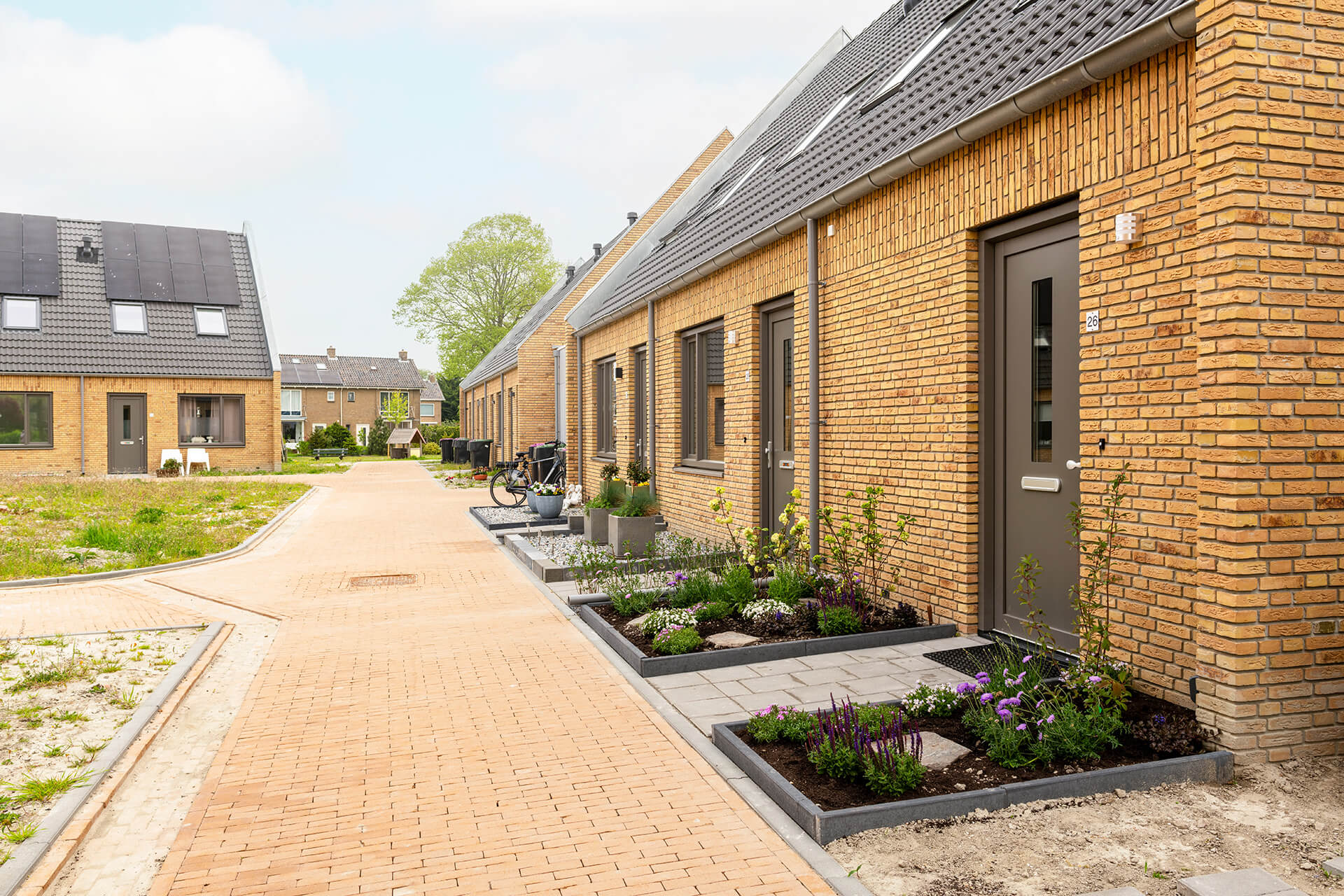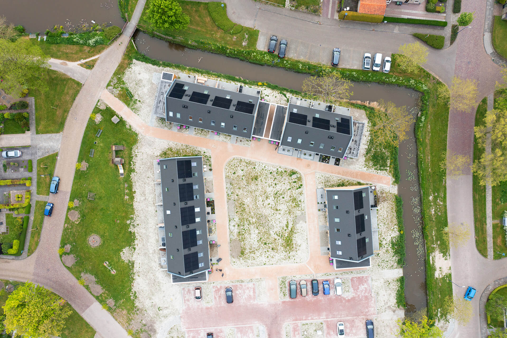 De woningen aan de Marten Oostwoudstraat zijn in een hofje gesitueerd, hierdoor is er een prettige gemeenschappelijke buitenruimte gecreeerd waardoor het zowel aan de voor- als achterzijde van de woningen ruimer voelt dan logischerwijs zou verwachten bij het ontbreken van een tuin. Hier lag dan ook de uitdaging van het project, de overgang van openbaar naar privé. Er is uiteindelijk gekozen voor een soort balkon op de begane grond. Hiermee is een klein stukje privé ruimte gecreëerd waar de bewoners voldoende privacy hebben. De woningen aan de Noorderbleek zijn ook in een hof geplaatst maar deze woningen hebben een grotere achtertuin.