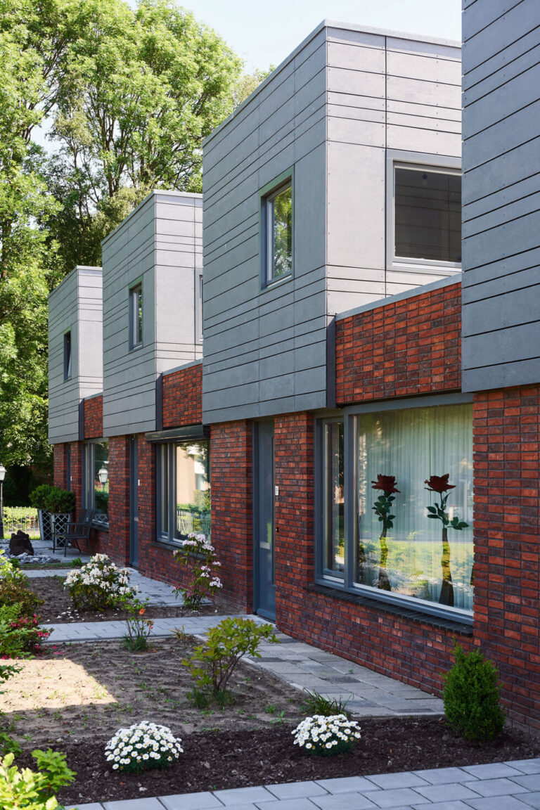 Er is aansluiting gezocht bij de gebouwen in de omgeving, waar indertijd veel aandacht is besteed aan de architectuur, met veel zorgvuldig uitgewerkte details, de nodige plastiek in de gevelopbouw en verschillende metselverbanden. De gebruikte mix van rode baksteen komt van “buurman” Strating.