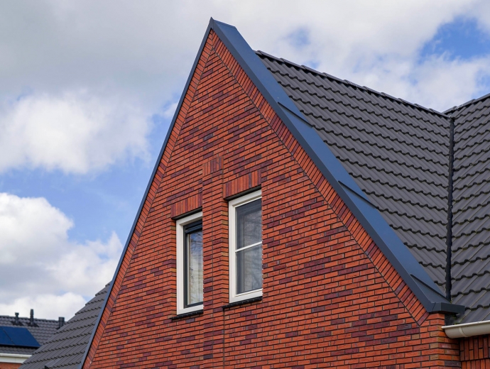 Er is hier gekozen voor een variant met een schilddak met twee dakkapellen en een versie met een topgevel die wat hoger dan de goot is aangezet en iets naar voren springt dan de rest van de voorgevel. De ene variant oogt bescheiden en compact, de andere heeft wat meer allure en vraagt wat meer ruimte. Beide zijn gebaseerd op dezelfde brede plattegrond met een compleet woonprogramma op de begane grond.