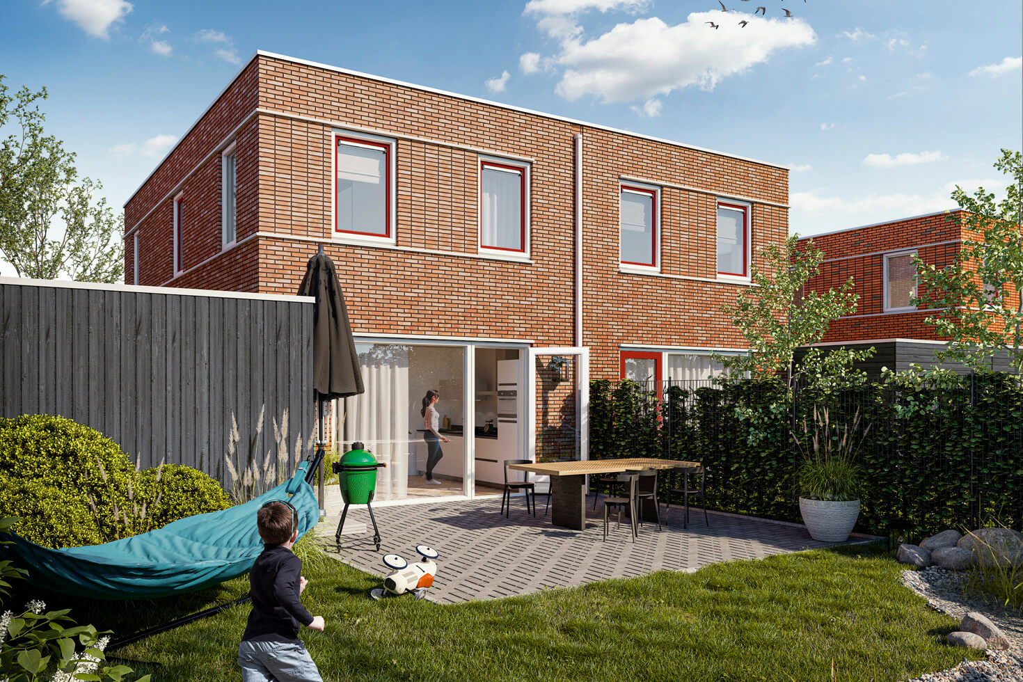 De woningen zullen volledig gasloos gebouwd worden met een goede isolatieschil. De woning krijgt een elektrische warmtepomp en wordt voorzien van zonnepanelen. Er zijn twee verschillende type gasloze woningen; plat dak en hellend dak. De woningen met een hellend dak staan gerichte op de entree van de wijk, deze zichtlocatie vroeg om een woning met een groter volume en uitstraling. De woningen met een plat dak liggen dwars op de entree en zijn vormgegeven in diverse rode kleurtinten baksteen. De entree en de trap naar de verdieping in het midden van de woning biedt vele indelingsmogelijkheden voor de nieuwe bewoners.